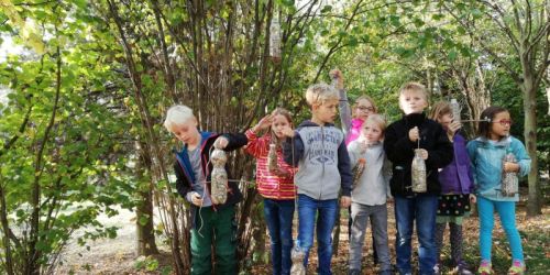 Wir pflegen weiter in den Ferien den Schul-Garten auf dem Hof der Familie Dahmen und bauten für den Winter Vogelfutter-Stationen. Zum Lohn konnten wir uns aus Kartoffeln Chips in verschiedenen Farben backen. Sie schmeckten sehr lecker!