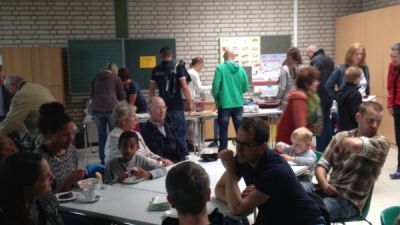Nach dem 10 km-Lauf hatten sich alle etwas Erholung verdient. Es gab wieder reichlich Leckereien zu essen, Grillfleisch, Pommes, selbstgemachte Salate, Kuchen aller Arten... Kinder und Eltern haben reichlich zugeschlagen, so dass am Ende kaum noch etwas übrig blieb.